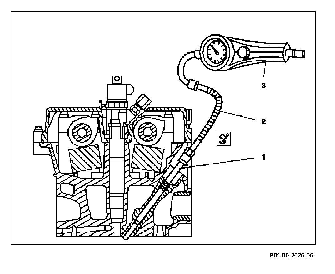 3 Connect cylinder leakage tester (3) to adapter piece (2).