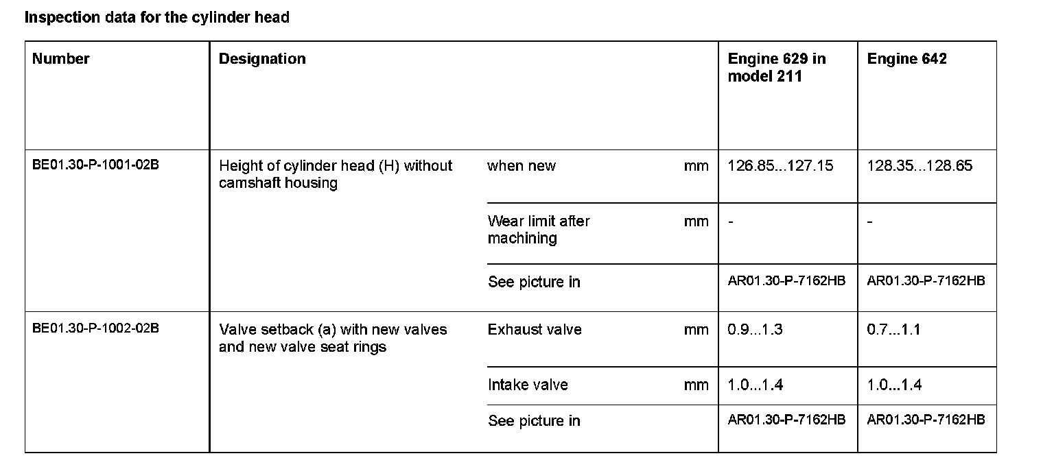 BE01.30-P-1000-02B Inspection data for cylinder headInspection data for the cylinder head: