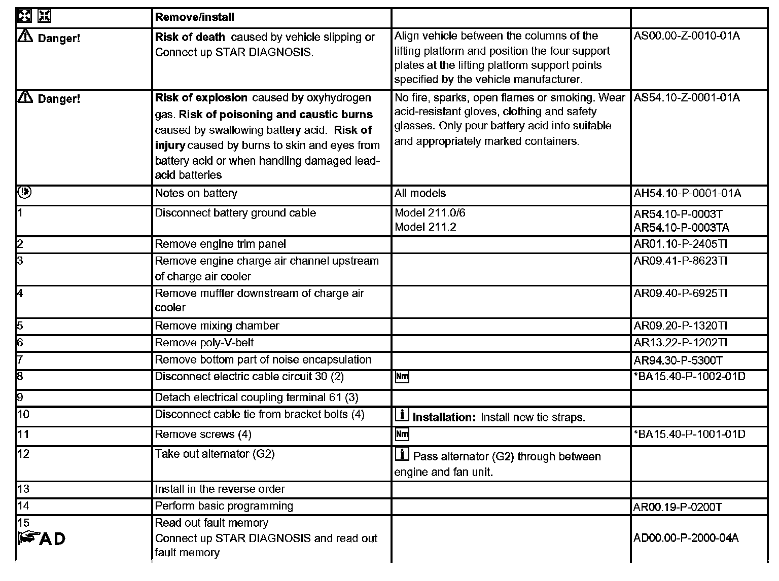 Remove/install Steps 1-15: