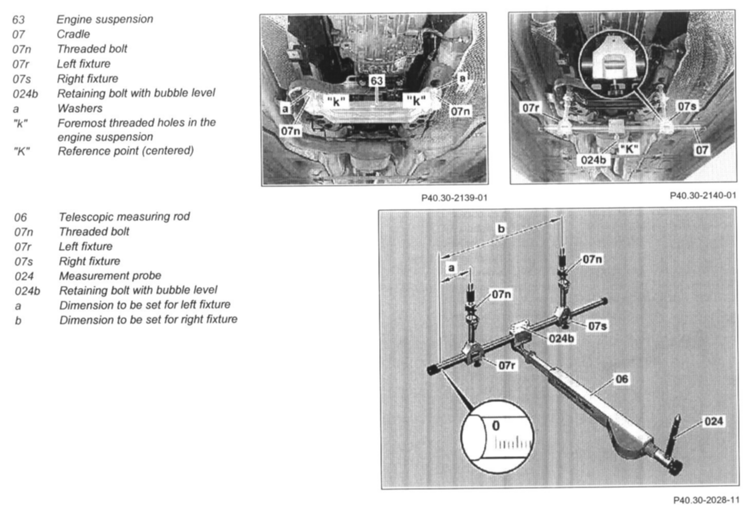 6 Install telescopic measuring rod (06) on retaining bolt (024b) with connecting parts