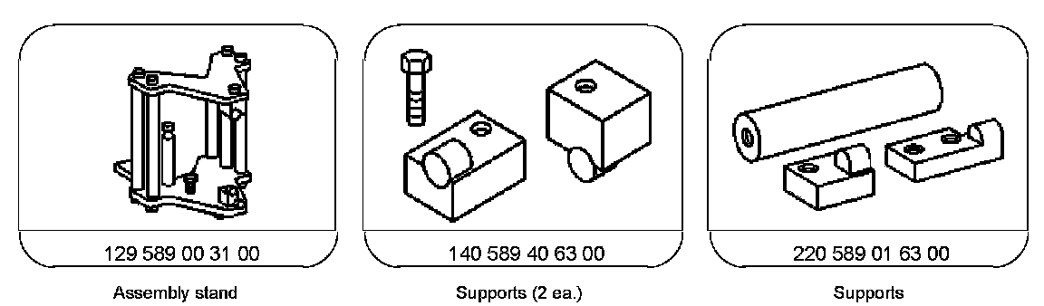 1 Mount rear axle center assembly in assembly stand (054) and clamp securely.
