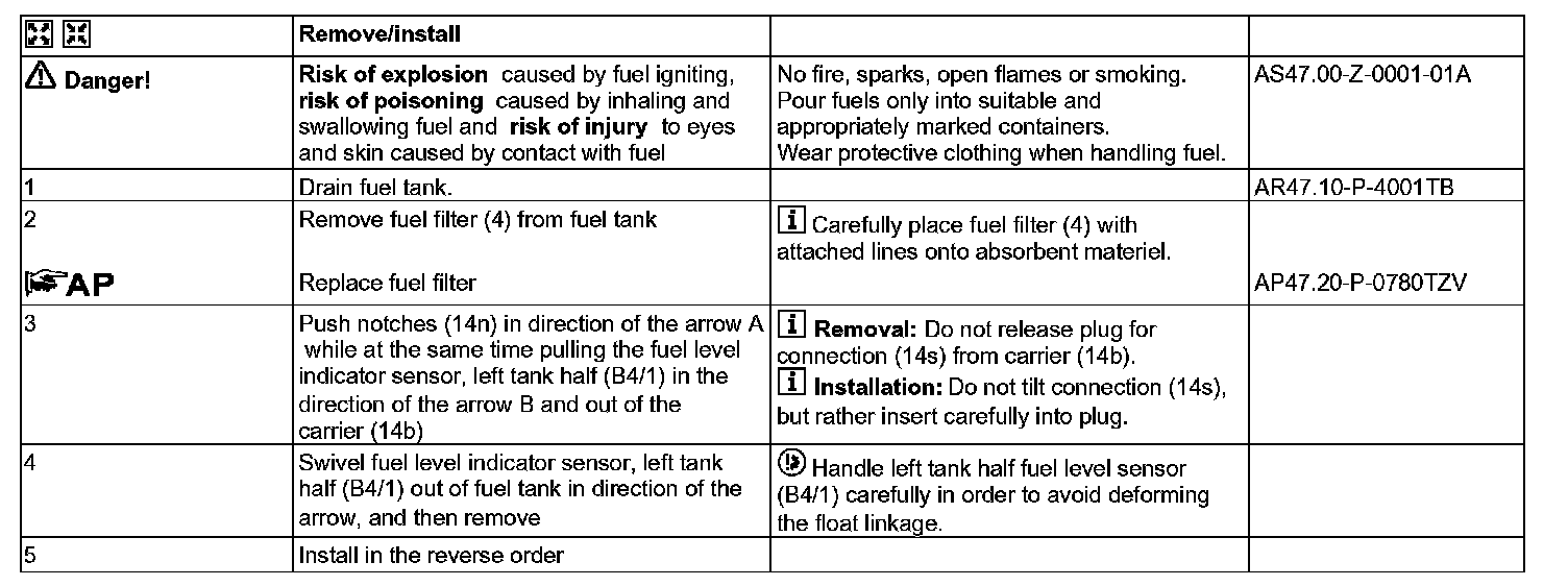 AR47.10-P-7000TZV Remove/Install Fuel Level Sensor
