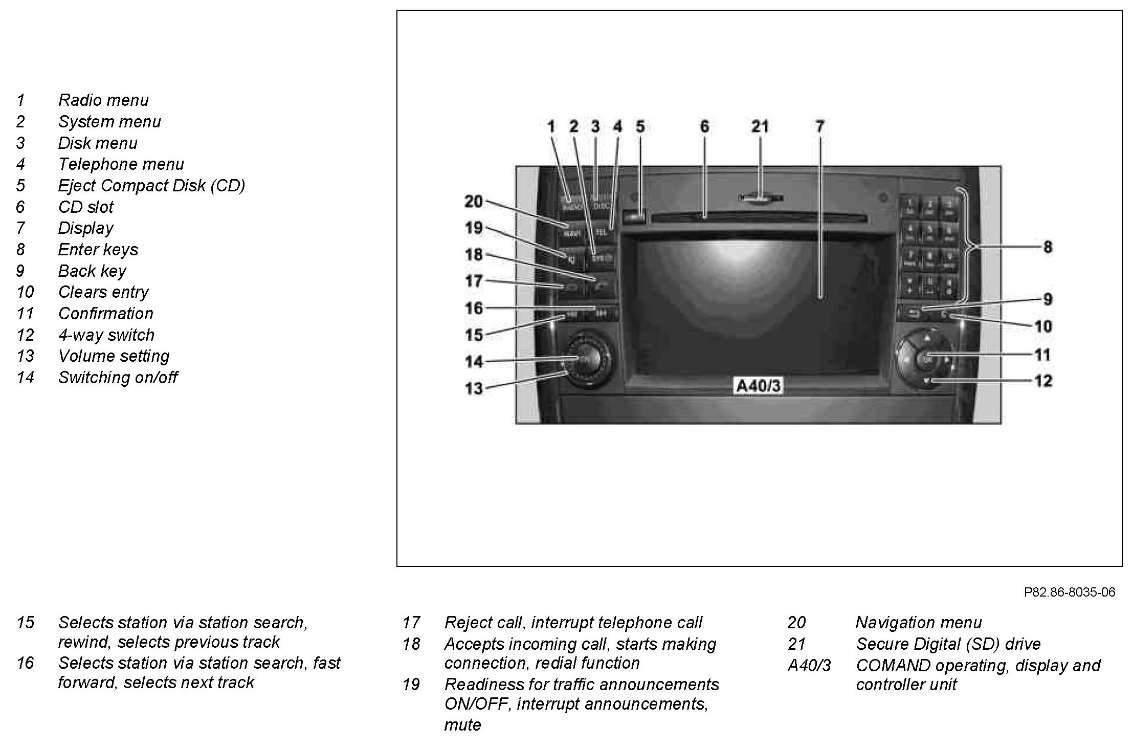 GF82.85-P-3134TXB COMAND Operating, Display and Controller Unit, Component Description