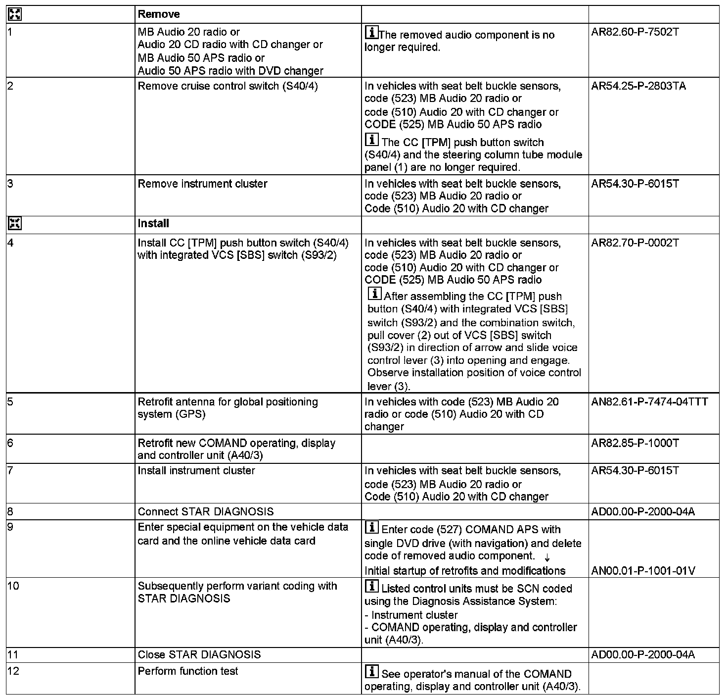 - except CODE (512) COMAND APS with DVD changer