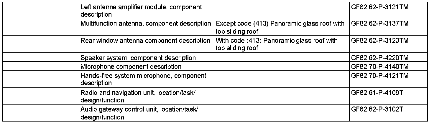 The current traffic situation is taken into consideration in the dynamic route guidance. The incoming information on the traffic situation can be received by the radio data system/traffic message channel (RDS/TMC) function with the FM receiver in the audio gateway control unit. The information on the current traffic situation is sent out by a specially equipped broadcasting corporation on an area-related basis via FM. A suitable FM/RDS transmitter must be tuned in. The FM receiver receives the traffic reports from the left antenna amplifier module (A2/64) and passes them on to the traffic data recorder.