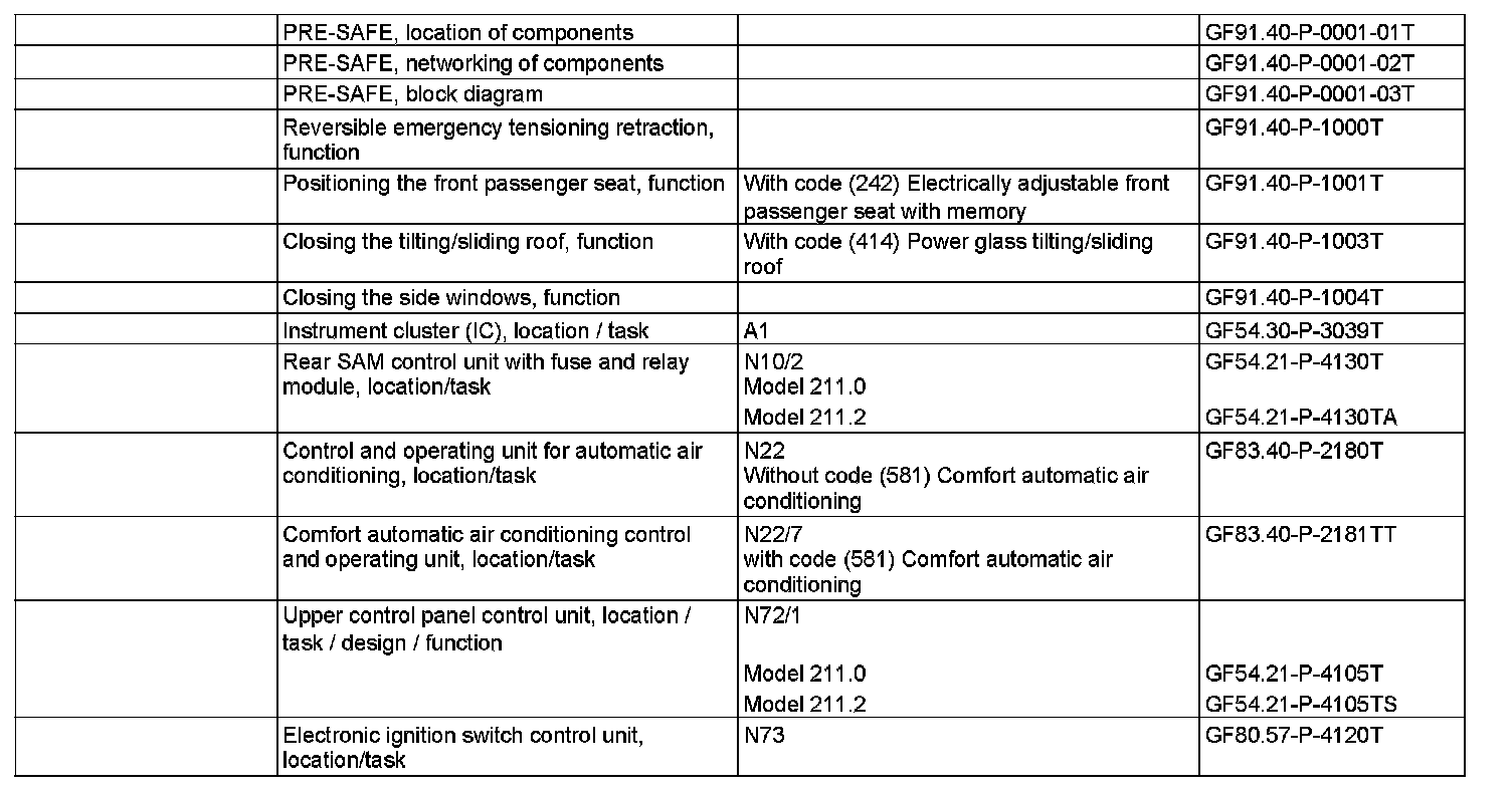 The sequence of the PRE-SAFE activities is coordinated via the so-called PRE-SAFE Master. The PRE-SAFE master is the ESP control unit, which is connected over the Controller Area Network bus Class C (engine compartment) (CAN-C) and the central gateway control unit (N93) to the Controller Area Network bus Class B (interior) (CAN-B). The existing vehicle systems are used to realize the PRE-SAFE function.
