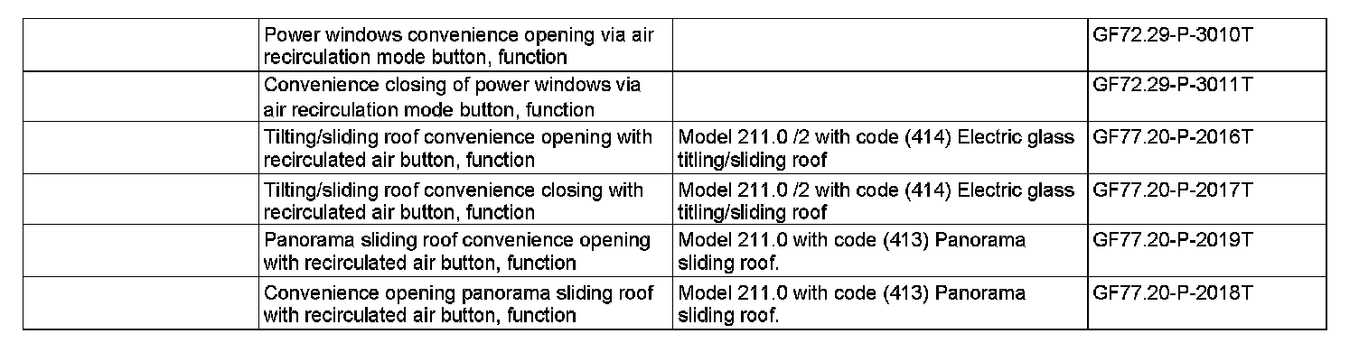 ^ Denormalization of tilting/sliding roof or panoramic sliding roof