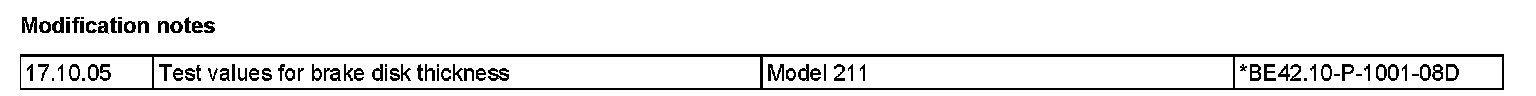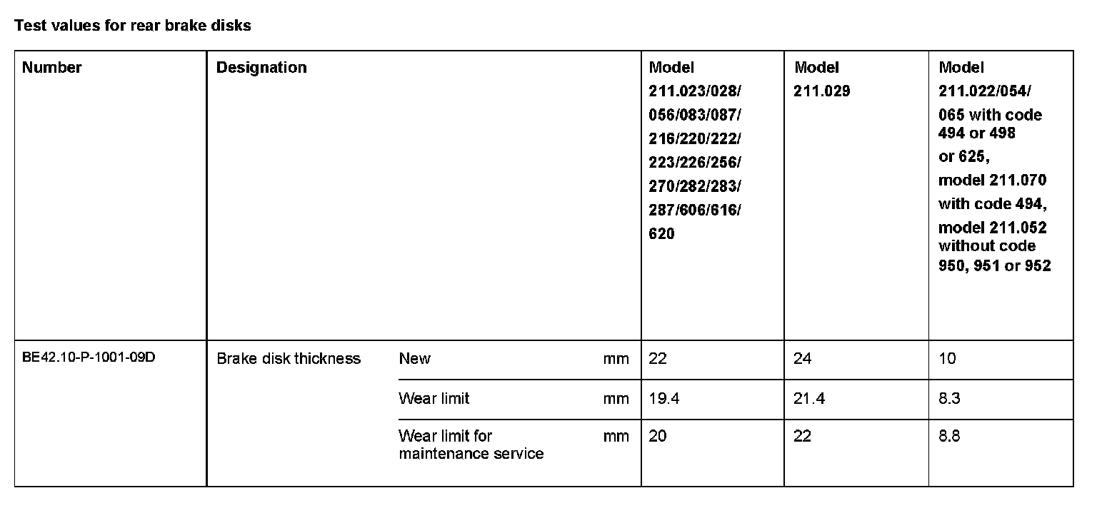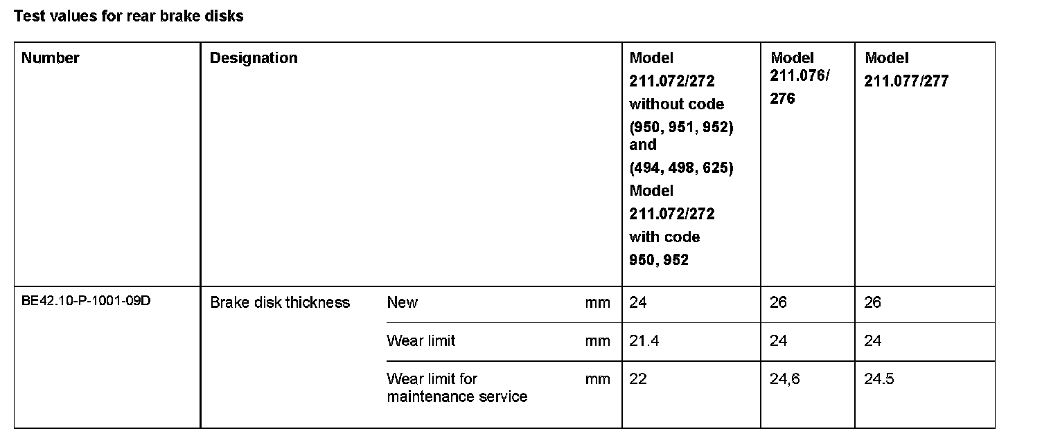 Test Values For Rear Brake Disks: