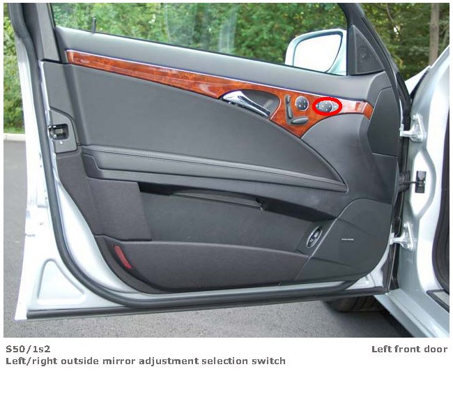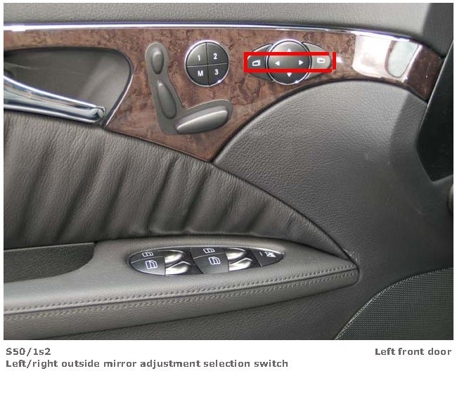 Left/Right Outside Mirror Adjustment Selection Switch (View 1):