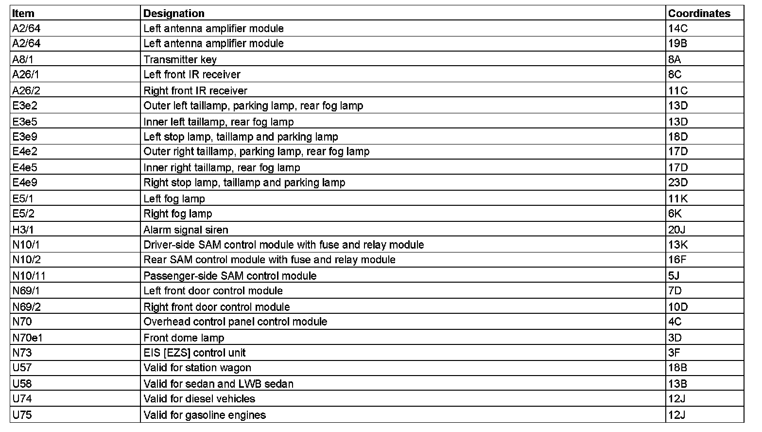 Component Description/Coordinates, A2/64 To U75: