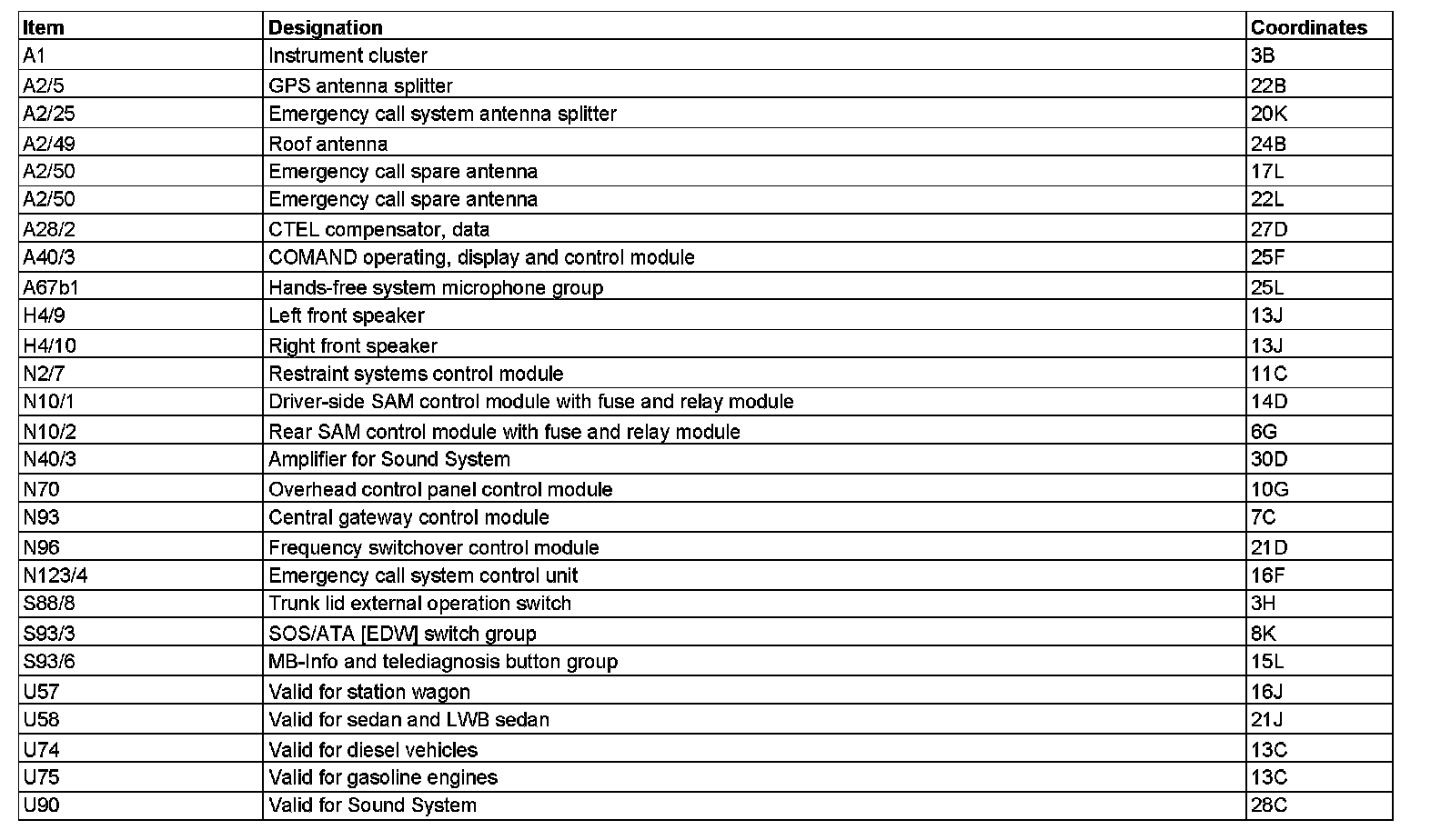 Component Description/Coordinates, A1 To U90: