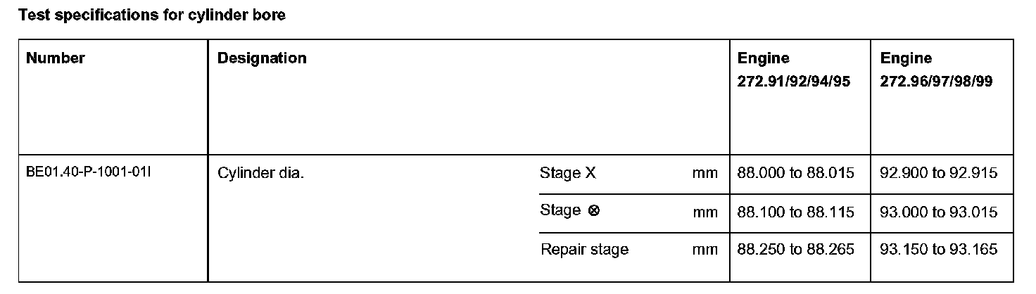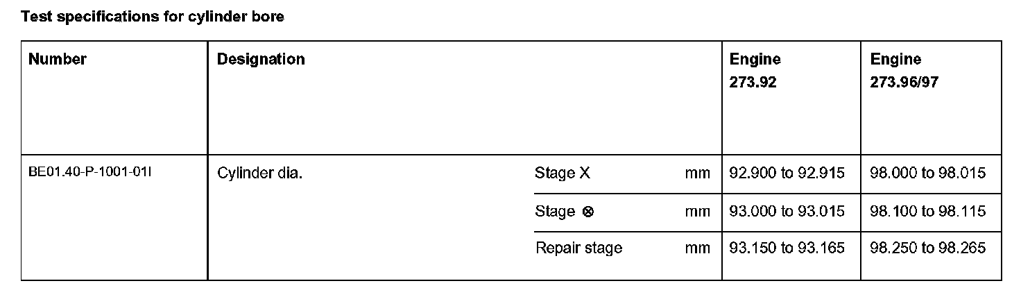 Test specifications for cylinder bore: