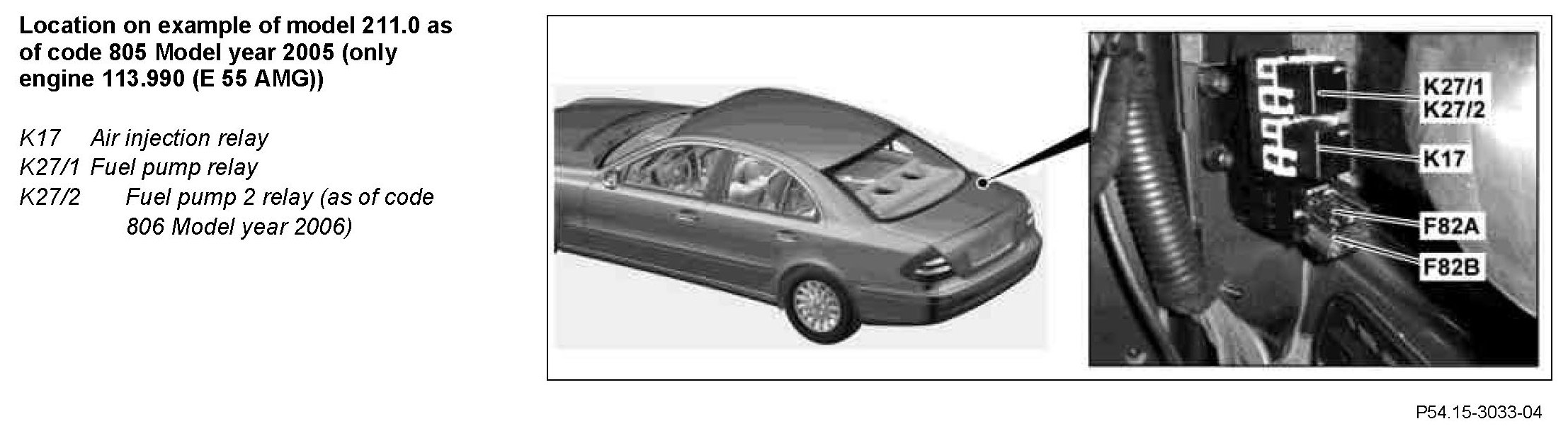 The air injection relay (K17) is located in the engine compartment on the rear right under the dust filter housing or combination filter housing.