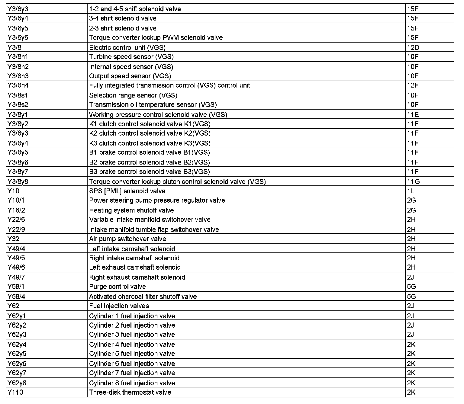 Component Locations: Component Location photographs can be found via their component names at the vehicle level. Component Locations
