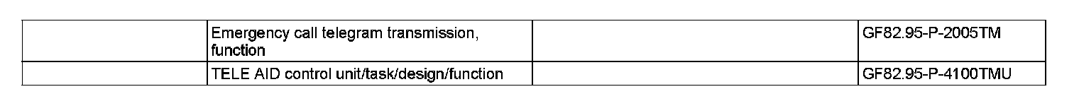 ^ Crash information (severity of accident), only for automatic emergency calls