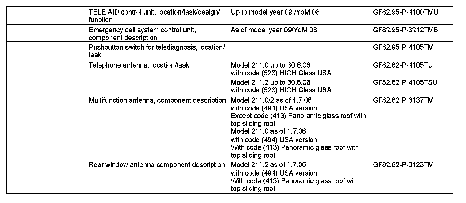 The telediagnosis service allows the user to get in contact with the service center, such as in the event of a problem with the vehicle. The service center can then use additional vehicle-specific data to make a remote diagnosis of the situation, and based on its findings, initiate appropriate assistance measures. If the MB-Info and breakdown assistance button group (S93/6) is pressed, a message is automatically sent to the service center via Short Message Service (SMS).