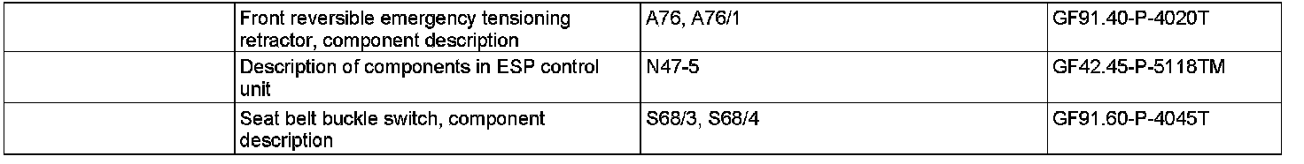 The reversible emergency tensioning retractors are activated only, if the vehicle speed exceeds 30 km/h and the latches of the seat belts are inserted into the seat belt buckles. This is detected over the driver seat belt buckle restraint systems switch (S68/3) and the front passenger seat belt buckle restraint systems switch (S68/4).