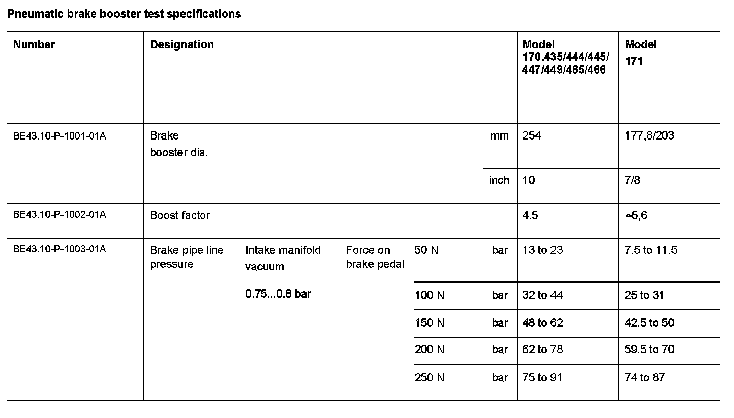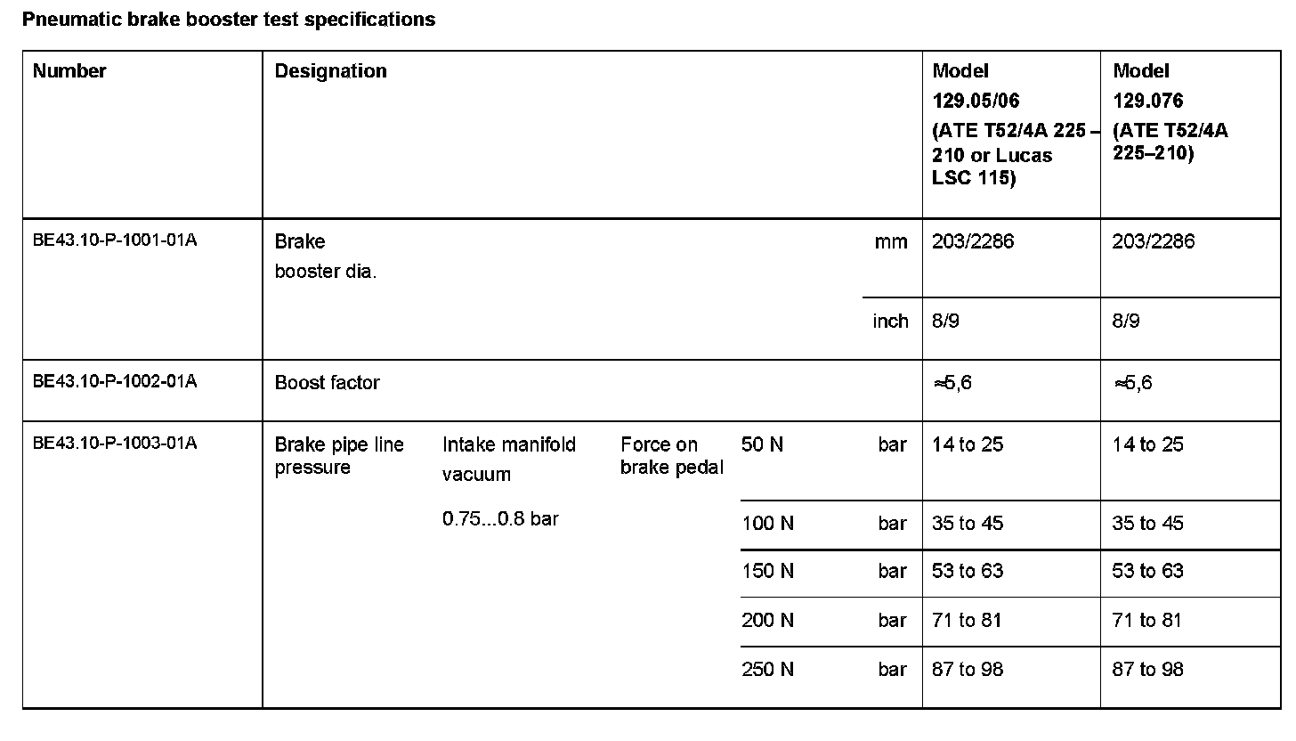 Pneumatic Brake Booster Test Specifications: