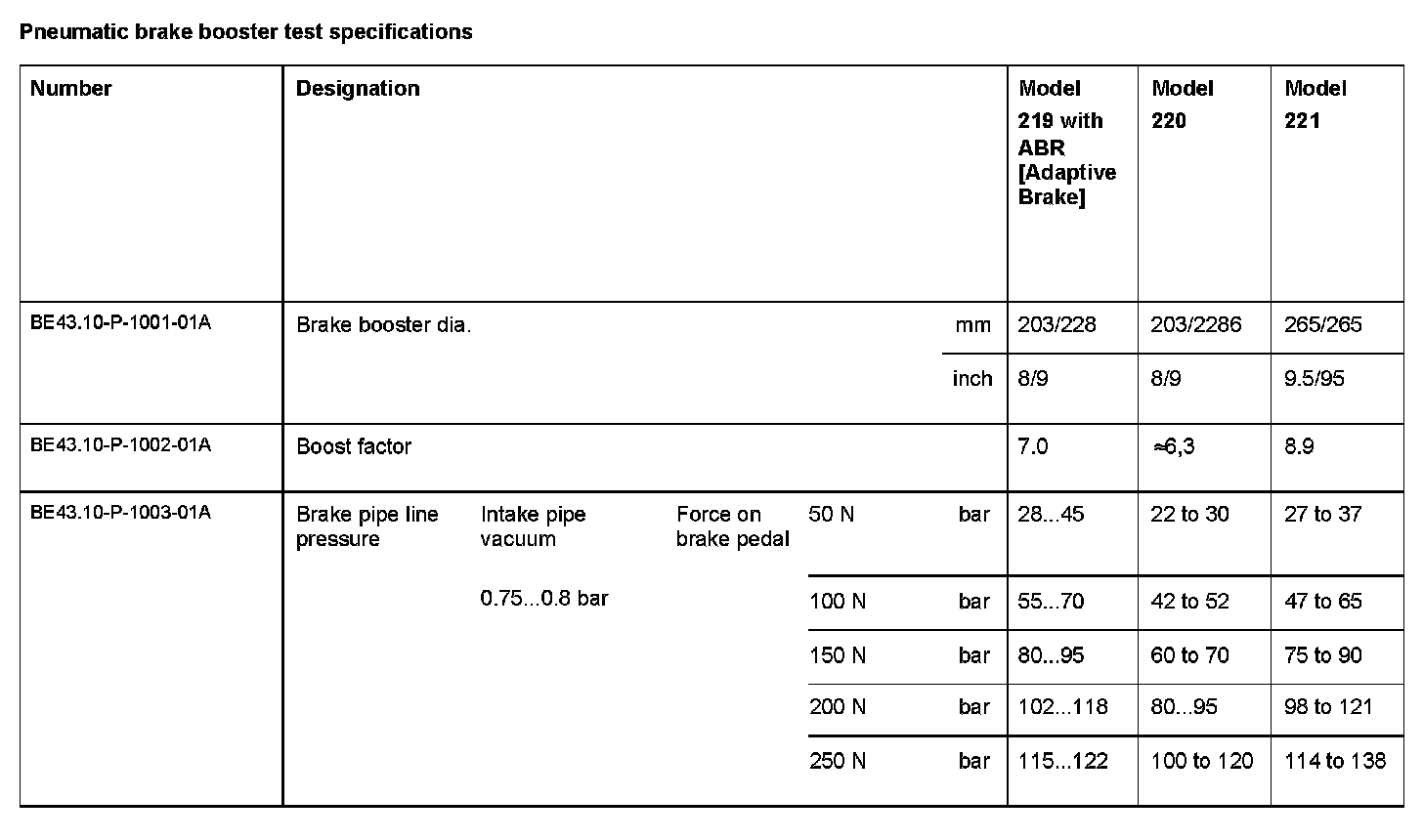 BE43.10-P-1000-01A Pneumatic brake booster test specificationsModification Notes:
