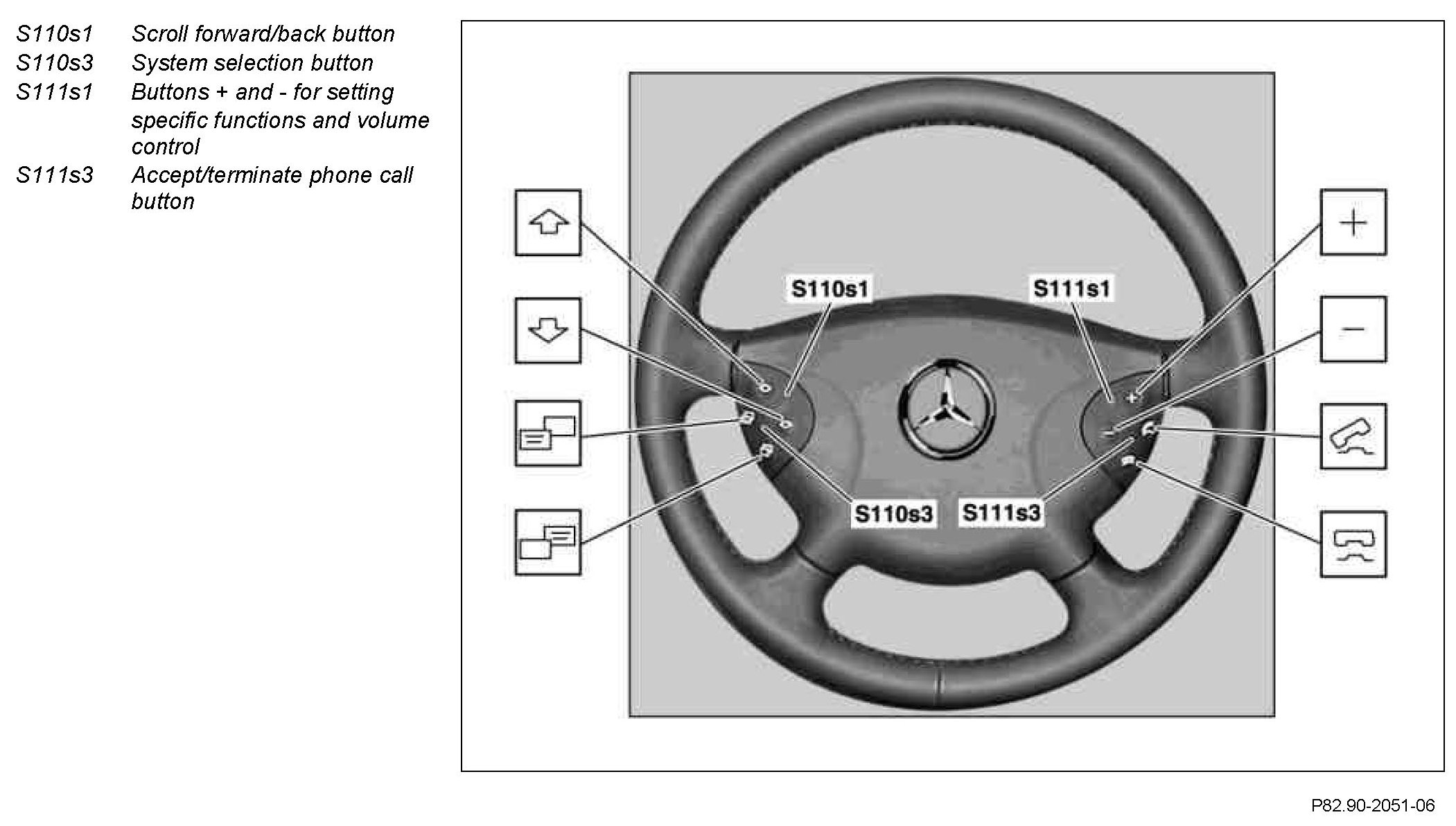 ^ Steering wheel gear shifter MINUS and steering wheel gear shifter PLUS (AMG vehicles and vehicles as of 1.6.06 with code (428) Steering wheel shift buttons)