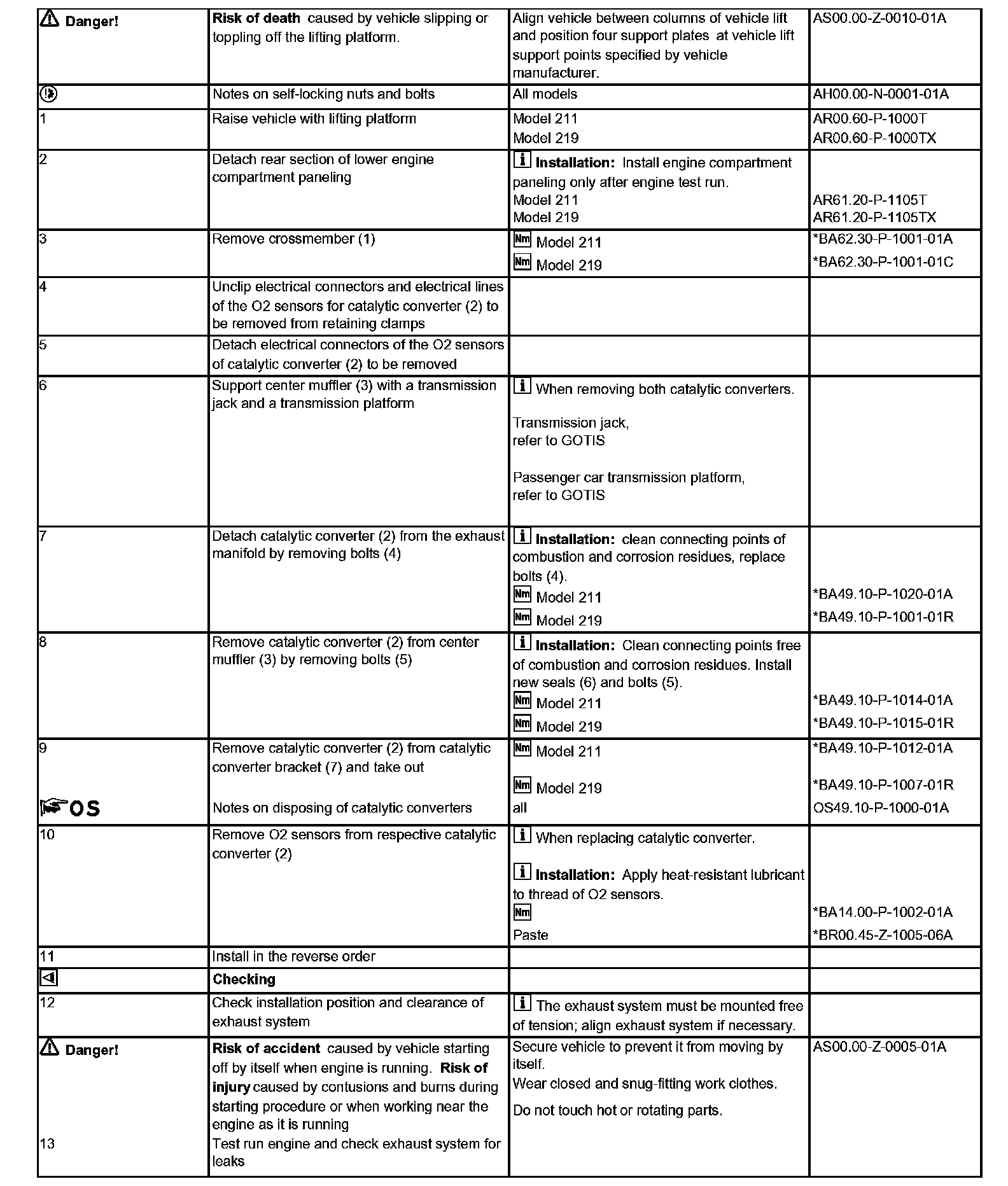 AR49.10-P-5500TMG Remove/install catalytic converterComponent Identification: