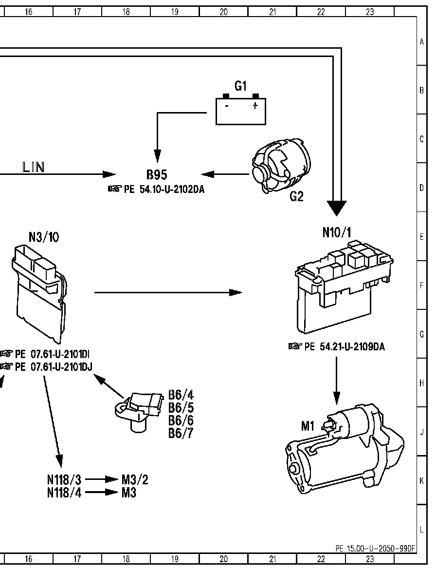 Electrical Function Diagram For Starter, Alternator, Battery PE15.00-U-2050DF