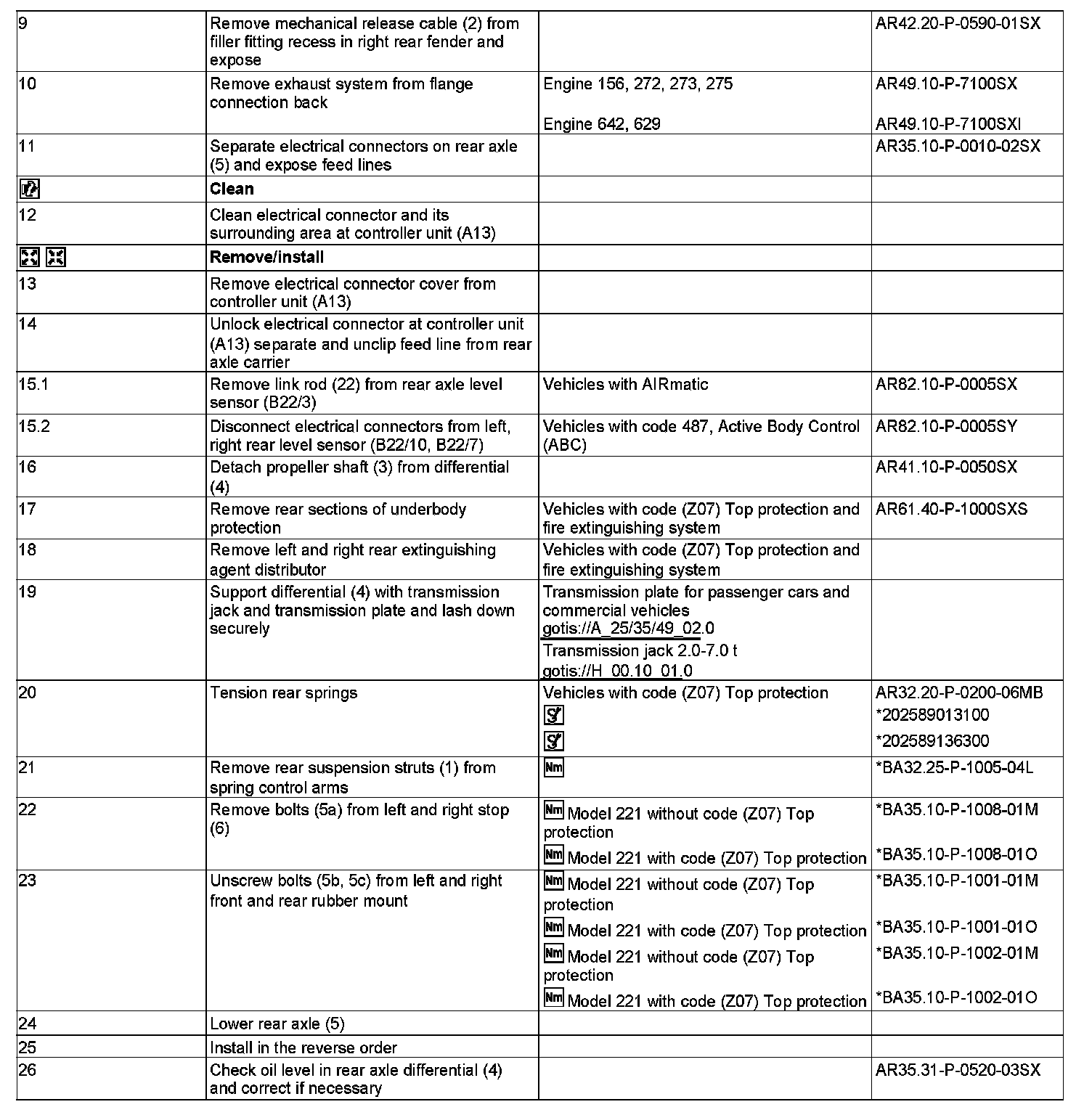 AR35.10-P-0010SX Remove/Install Complete Rear Axle