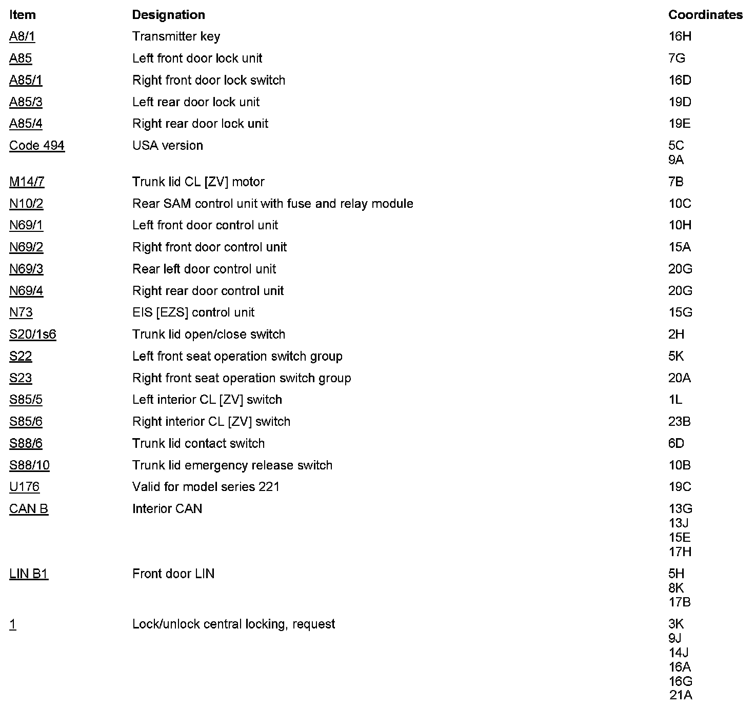 PE80.20-U-2053SAA Electrical Function Diagram For Central Locking System With Inside Switch, Lock and Release