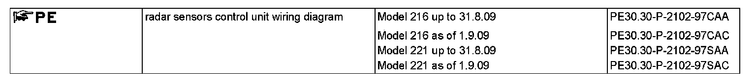 The radar sensors control unit is the evaluation unit of the short range radar for vehicles with the following equipment installed: