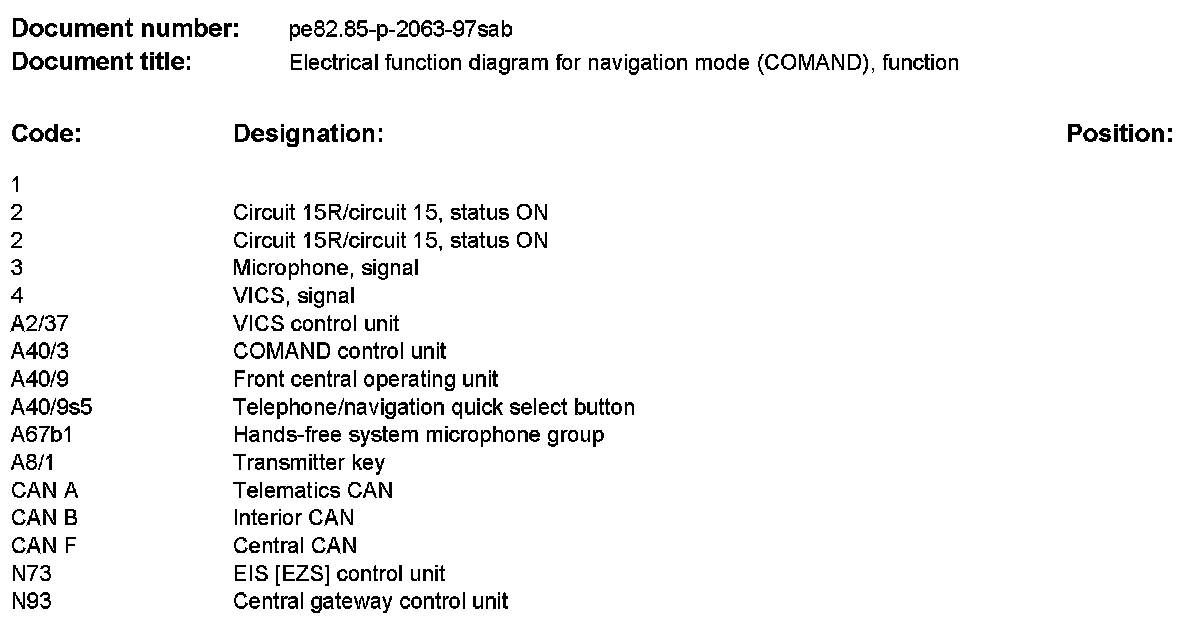 PE82.85-P-2063SAB Electrical Function Diagram For Navigation Mode (COMAND), Function
