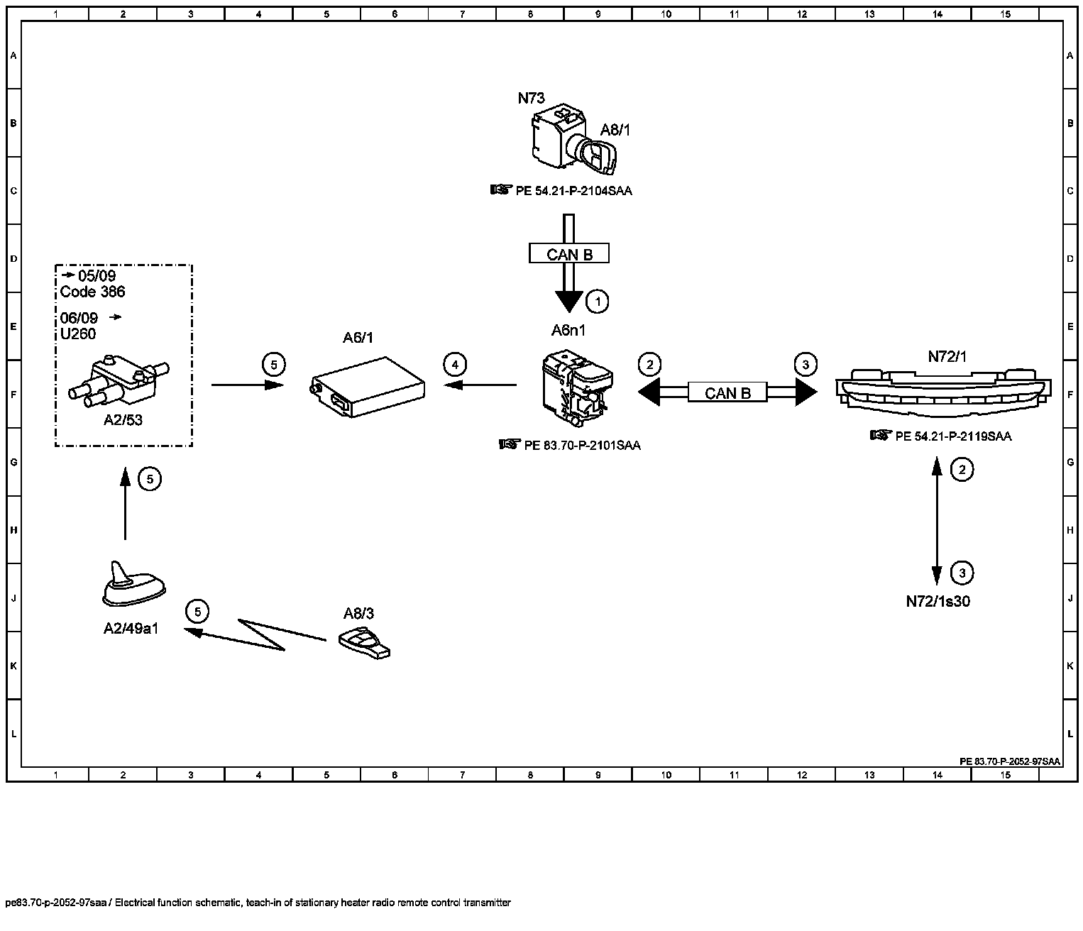 PE83.70-P-2052SAA Electrical Function Schematic, Teach-In Of Stationary Heater Radio Remote Control Transmitter