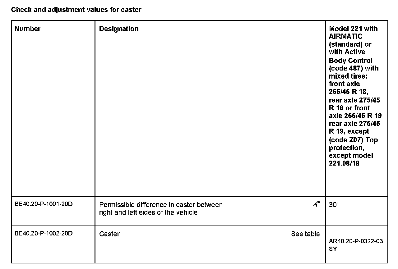 Check And Adjustment Values For Caster: