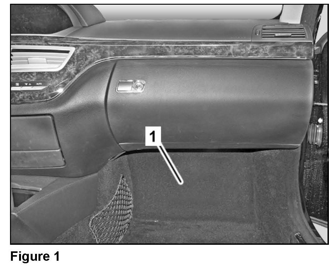 1. Fold back floor covering (1, Figures 1, 2) in front passenger footwell.