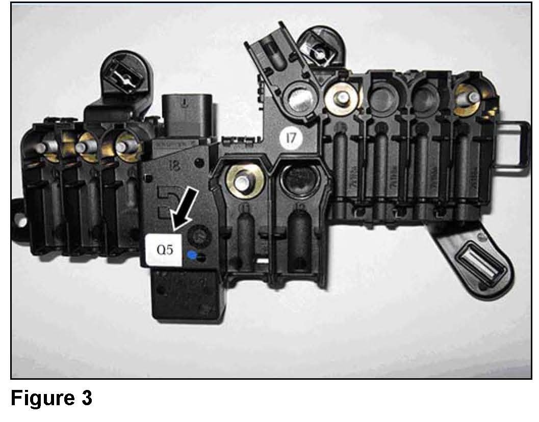 ^ If part number: A 221 540 39 50 and Q5 sticker (arrow, Figure 3) ARE indicated on prefuse box, procedure is complete.