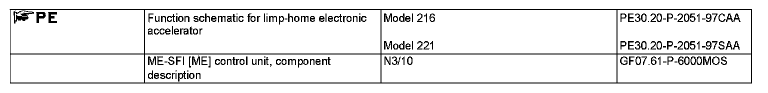 The ME-SFI control unit (N3/10) controls limp-home mode according to the following sensors and signals: