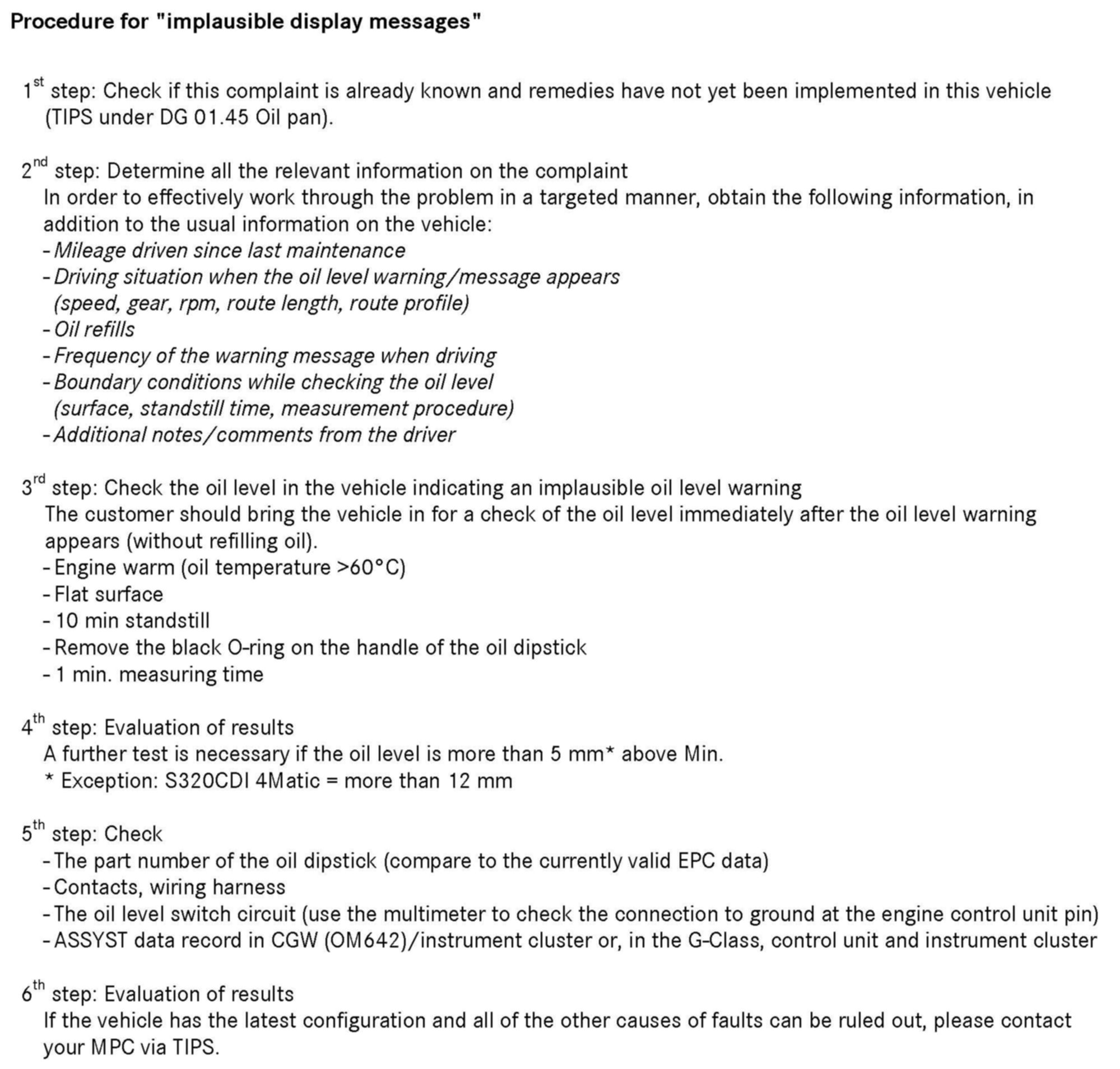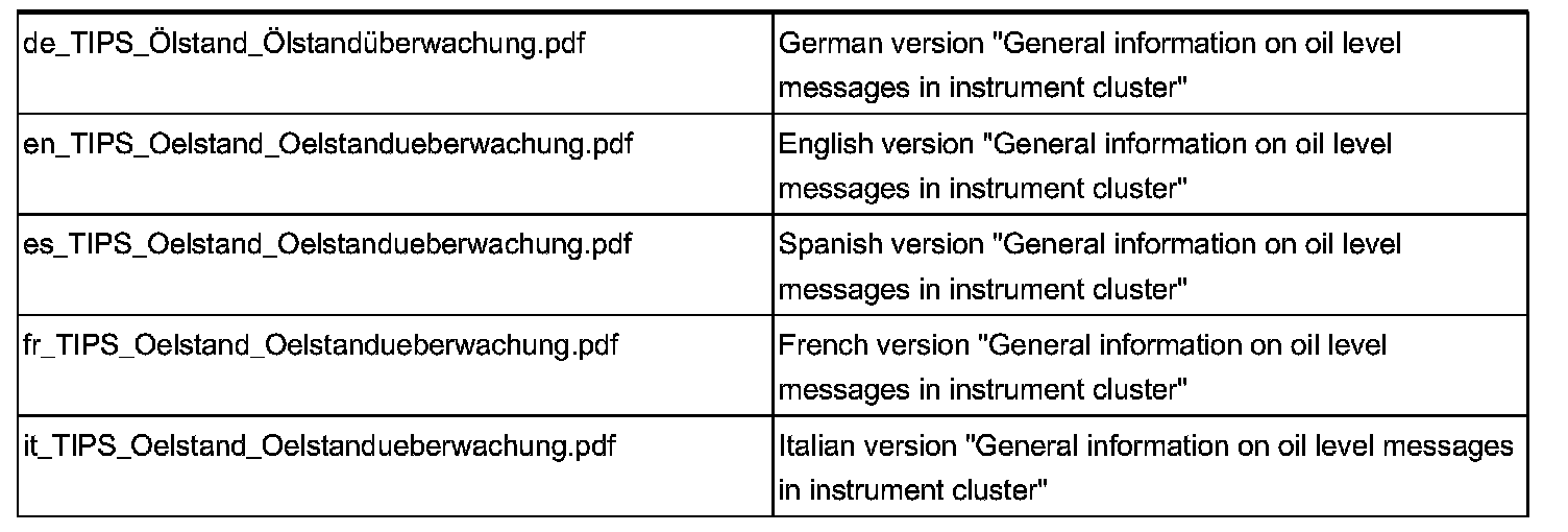 The attachment to this document contains detailed information on procedures and possible remedies in the event of implausible display messages concerning the engine oil level in the Instrument Cluster (IC).
