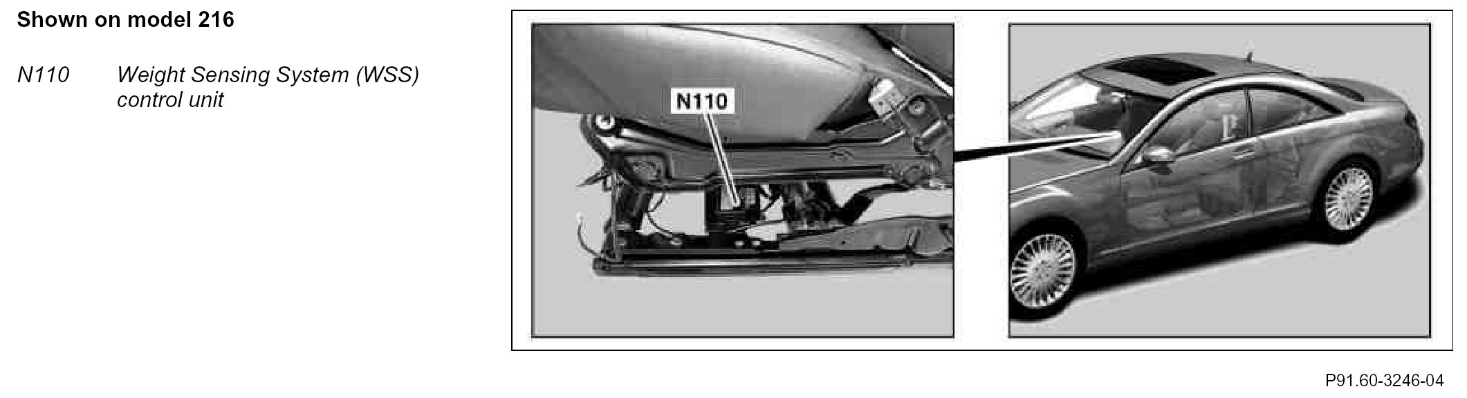 The WSS control unit is located in the seat frame of the front passenger seat.