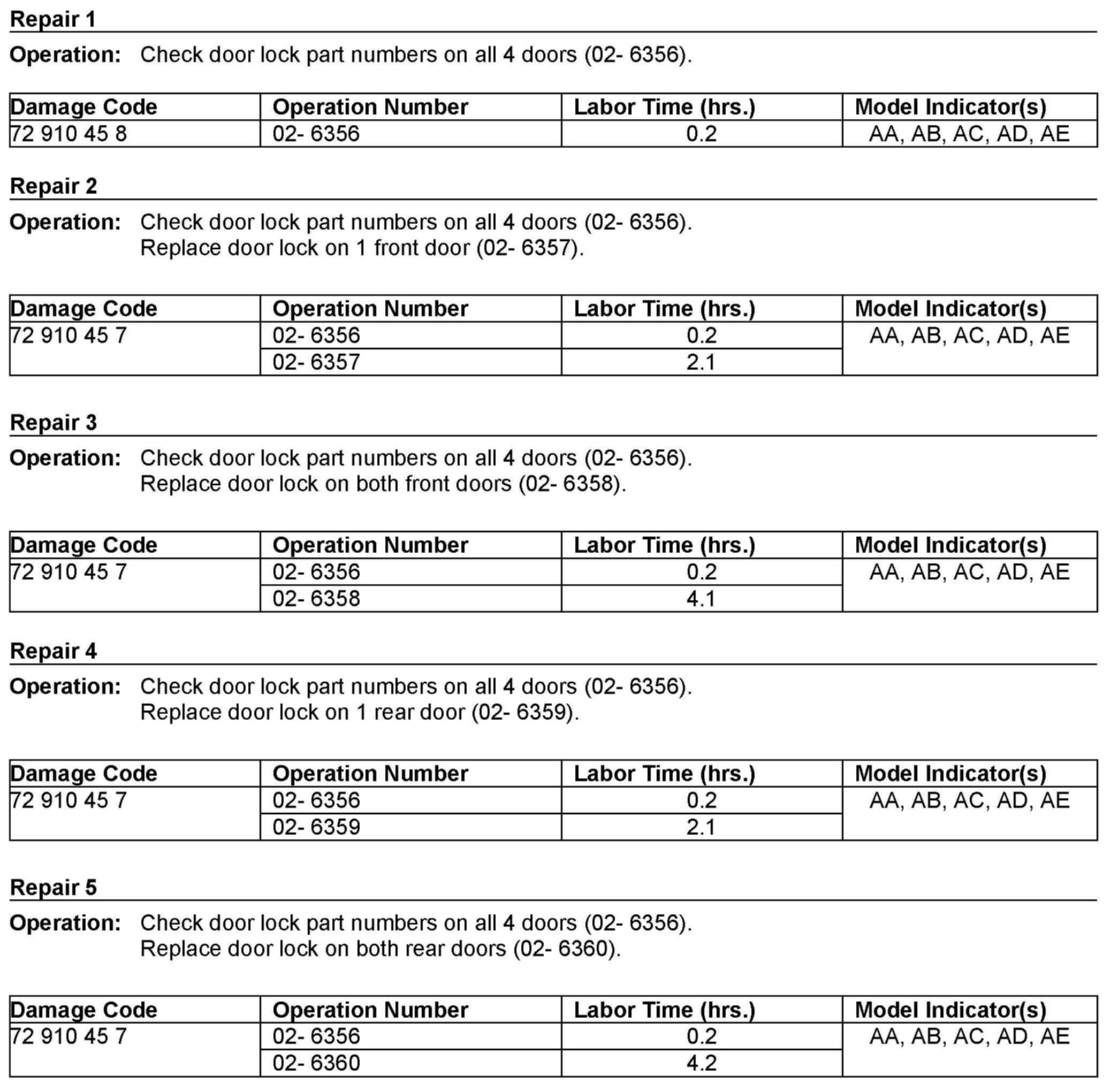 1. Compare the part number (A, Figure 1) of the door locks installed on the vehicle with the part number in the table above (refer also to Figure 2).