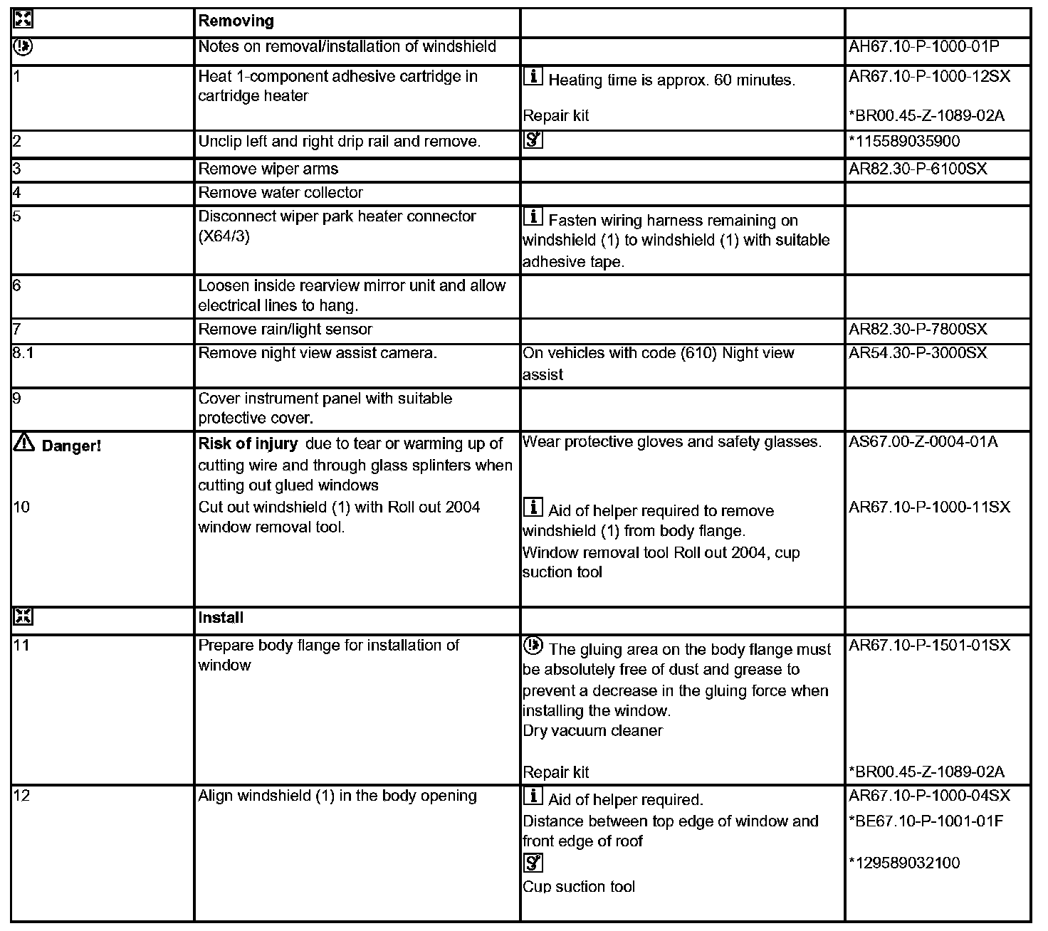 AR67.10-P-1000SX Remove/Install Windshield