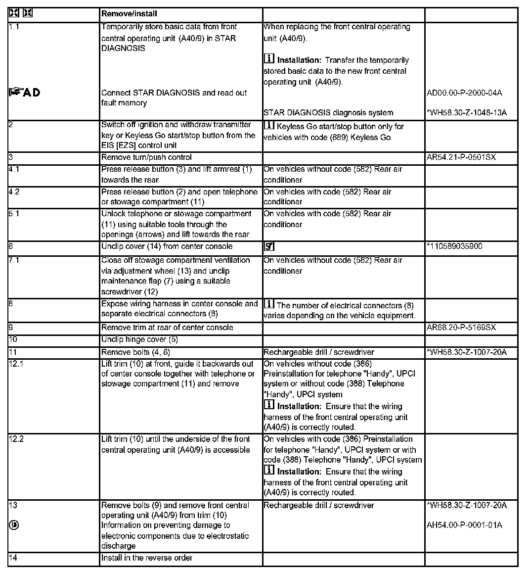 AR54.21-P-0500SX Remove/Install Front Central Operating Unit Control Unit