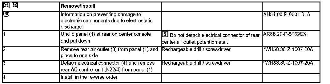 AR83.50-P-9070SX Remove And Install Rear Air Conditioning Pushbutton Control Unit