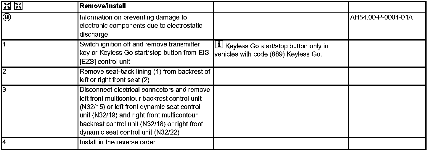AR91.25-P-1900SX Remove/Install Front Multicontour Seat Control Unit/dynamic Seat