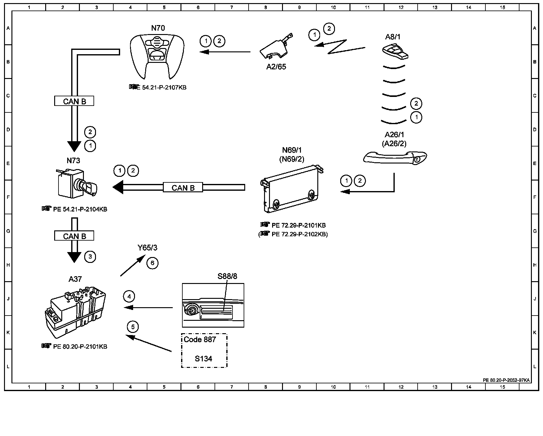 PE80.20-P-2052KA Electrical Function Diagram For Central Locking, Operation With Transmitter Key