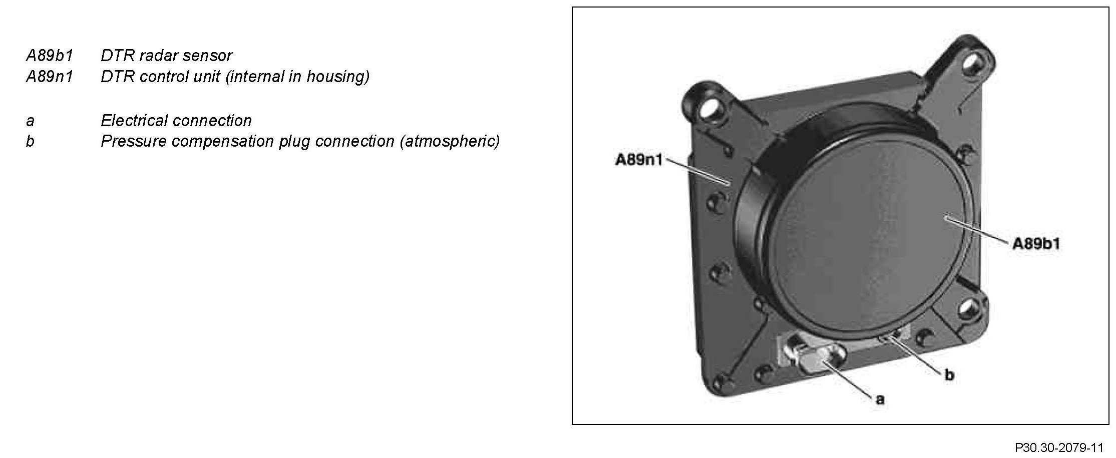 The DTR radar sensor (radar sensor) and the DTR control unit (radar sensor for electronic analysis system) are integrated in the DTR controller unit.