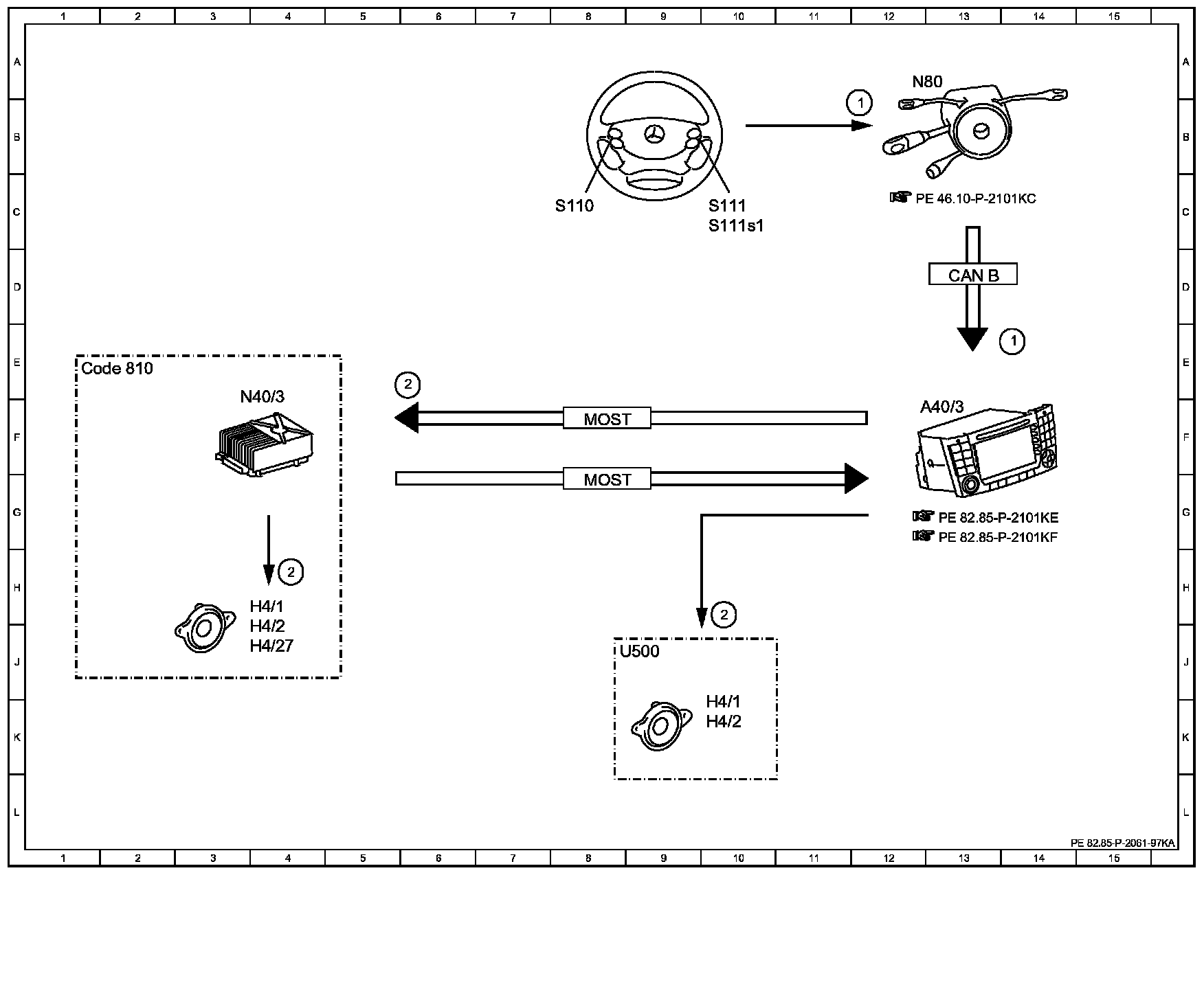 Electrical Function Diagram For Route Guidance By Voice Output (COMAND), Function PE82.85-P-2061KA