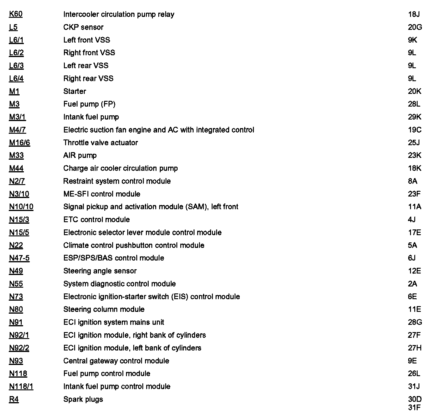 Component Locations: Component Location photographs can be found via their component names at the vehicle level. Component Locations