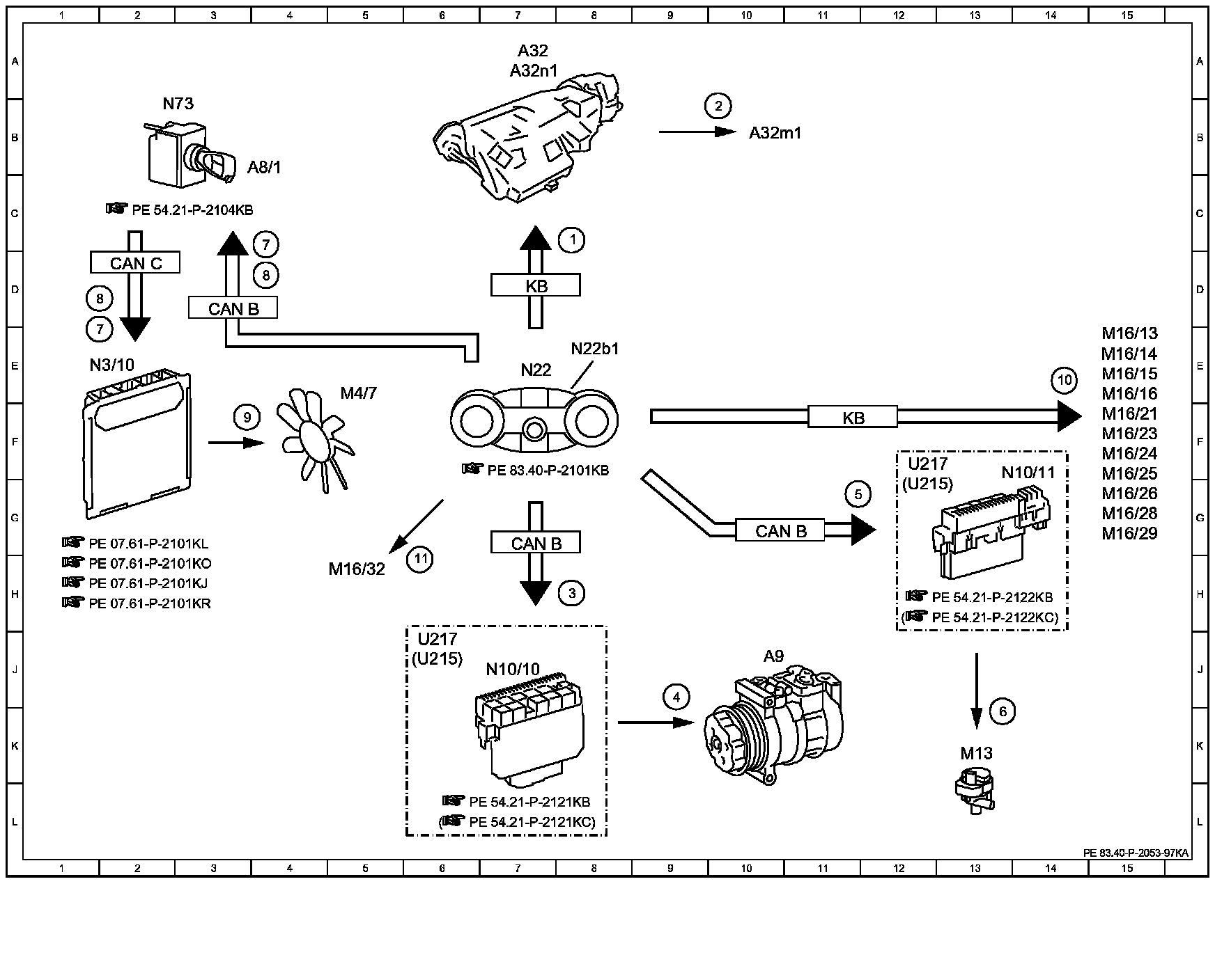 Electrical Function Schematic For Automatic Air Conditioning, Actuation PE83.40-P-2053KA