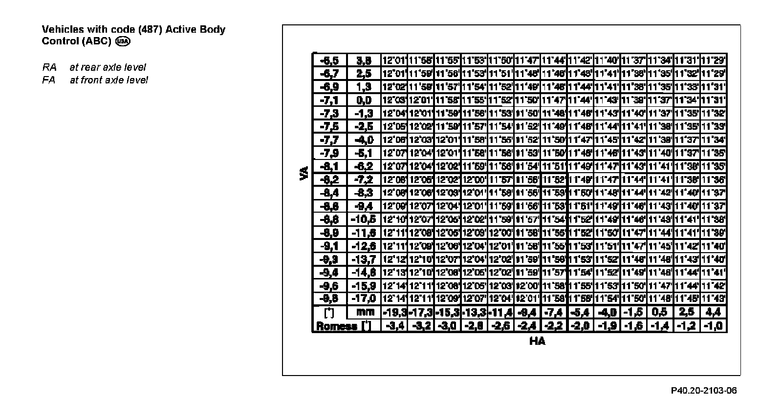 Vehicles with code (487) Active Body Control (ABC) except USA: