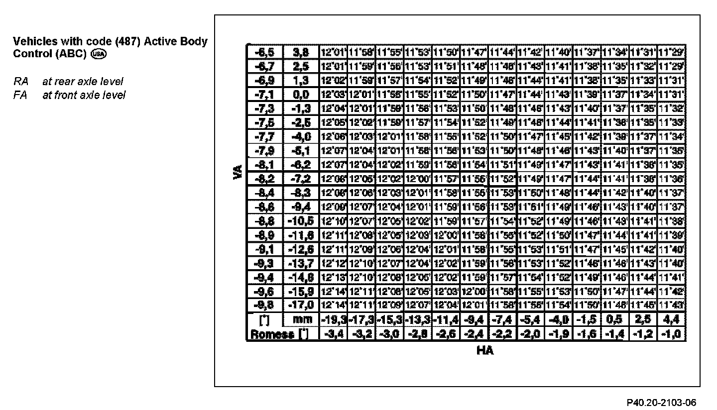Rear axle level value (RA): +0.2°
