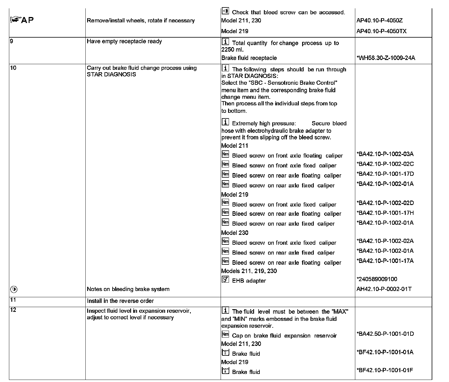 AP42.00-P-4280R Replace brake fluid Model 211 - with Sensotronic Brake Control (SBC)